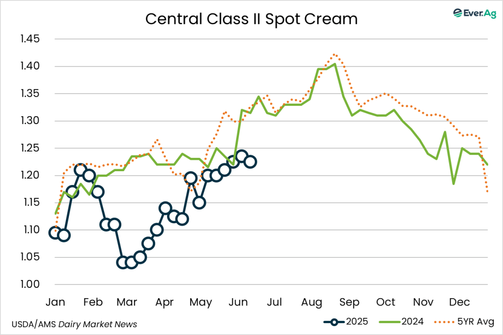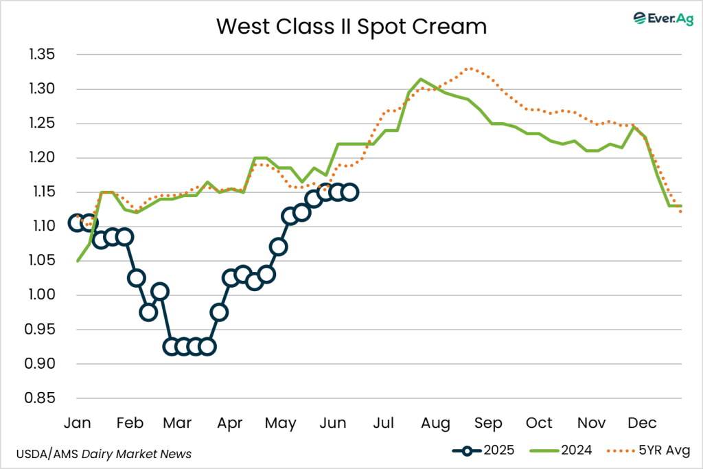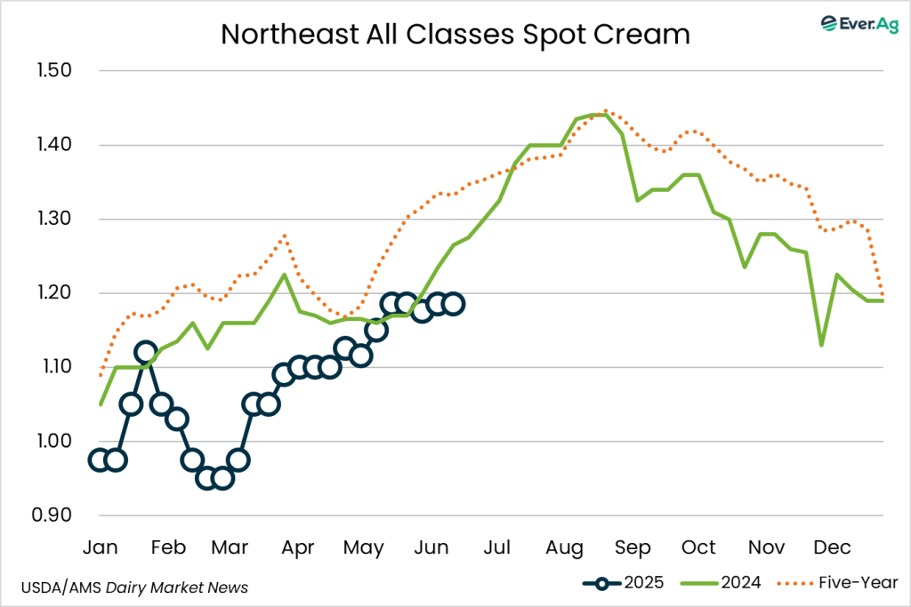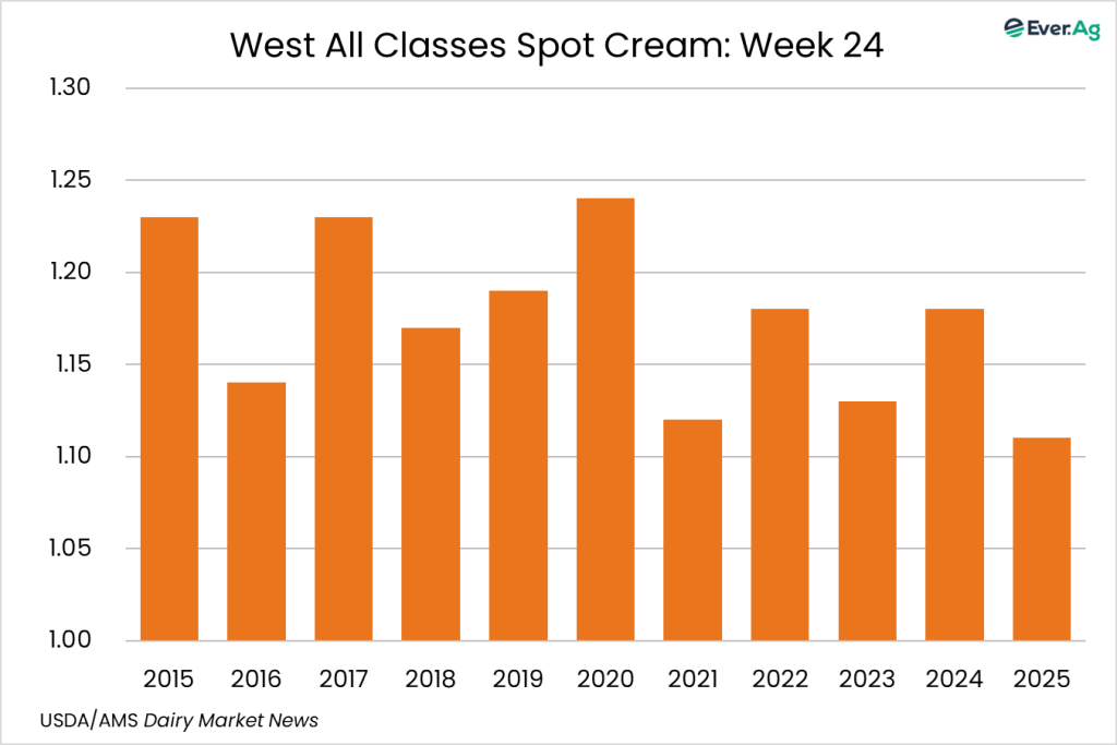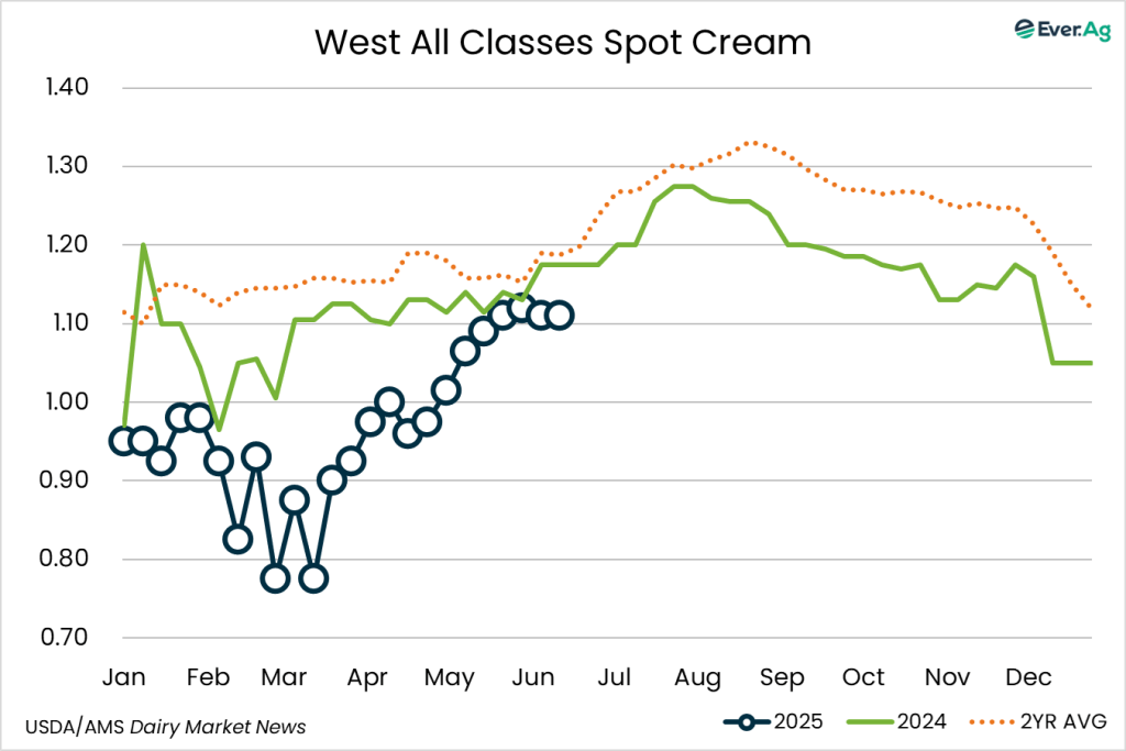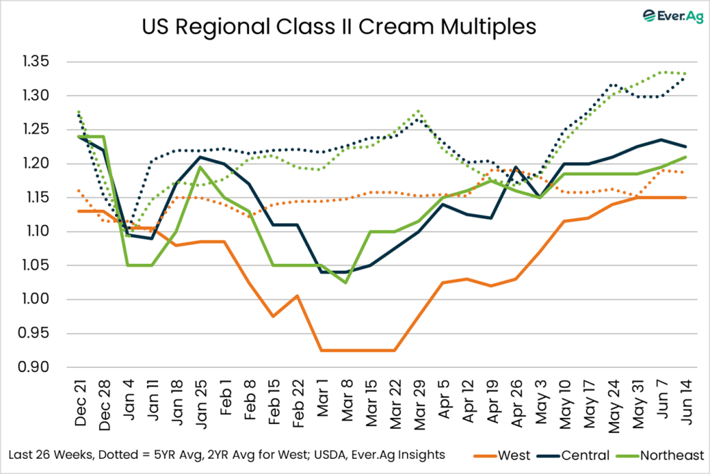 Cream loads are available in the region. Although stakeholders describe cream demand as stronger, cream multiples have not changed from week 23.