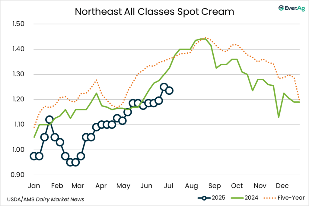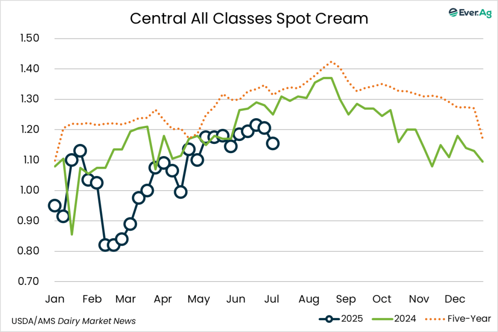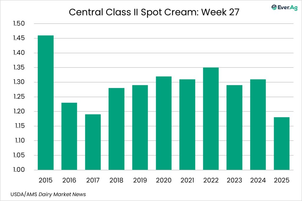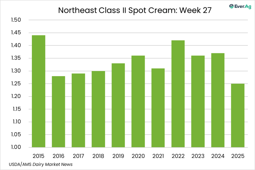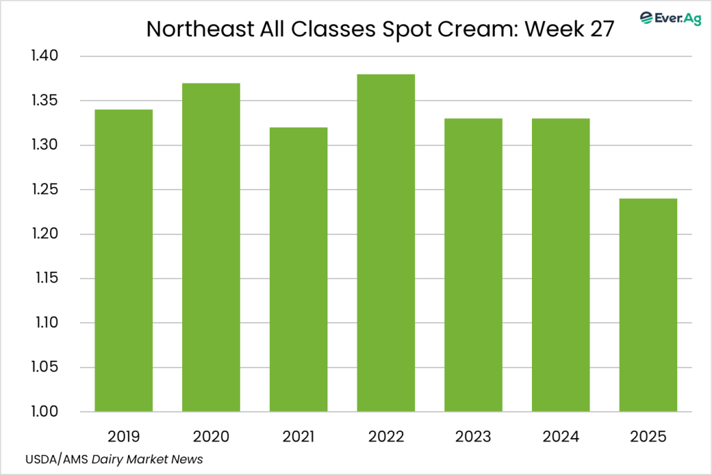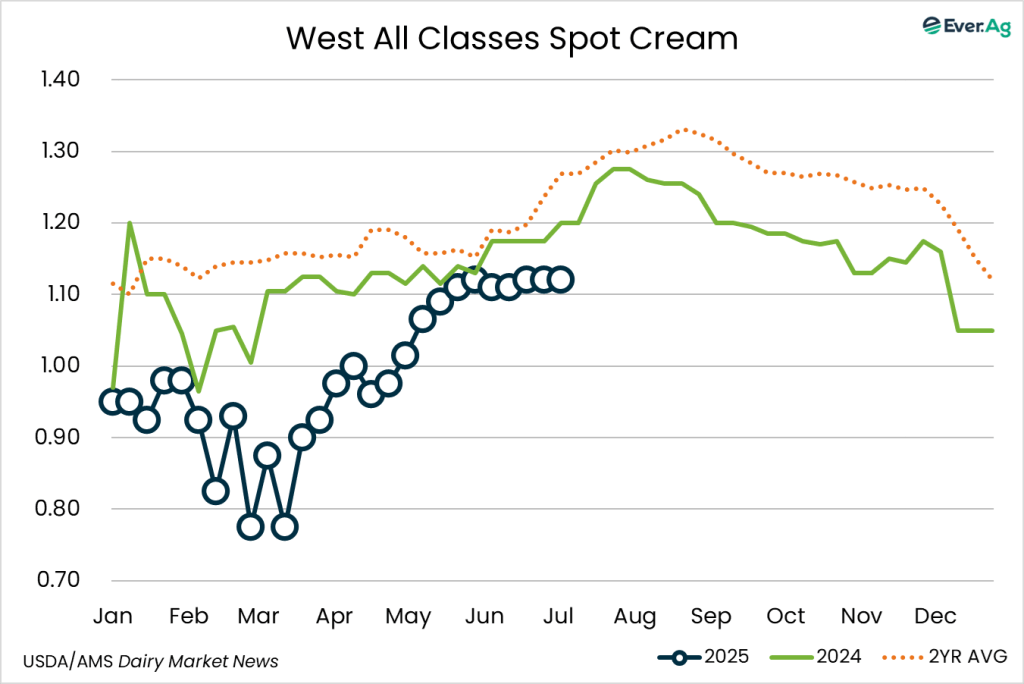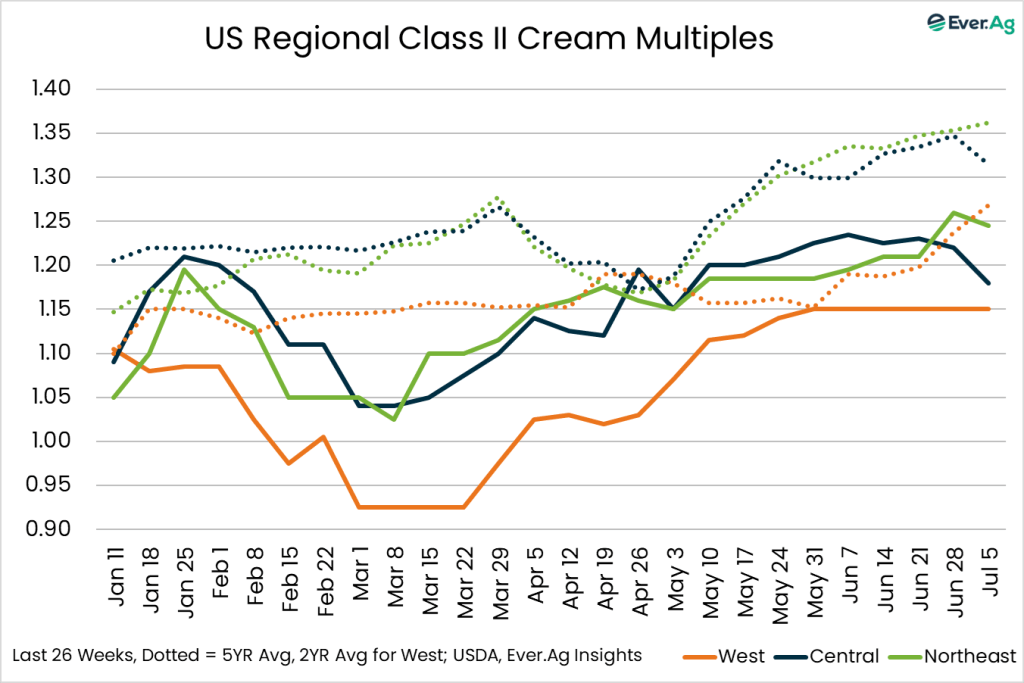Cream is generally more available with the holiday weekend. However, cream demand did not change much for week 27 compared to week 26, and cream multiples are unchanged.