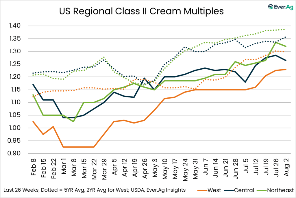 Cream demand is stronger, while cream volumes are generally tighter. Cream multiples moved slightly higher for the top end of both ranges.