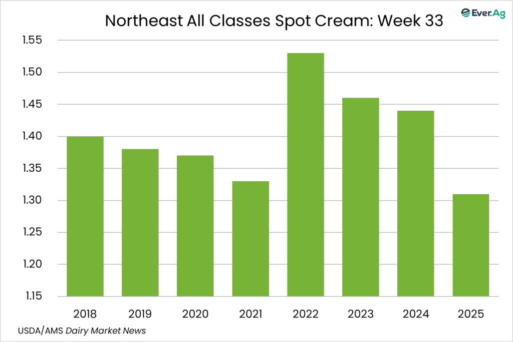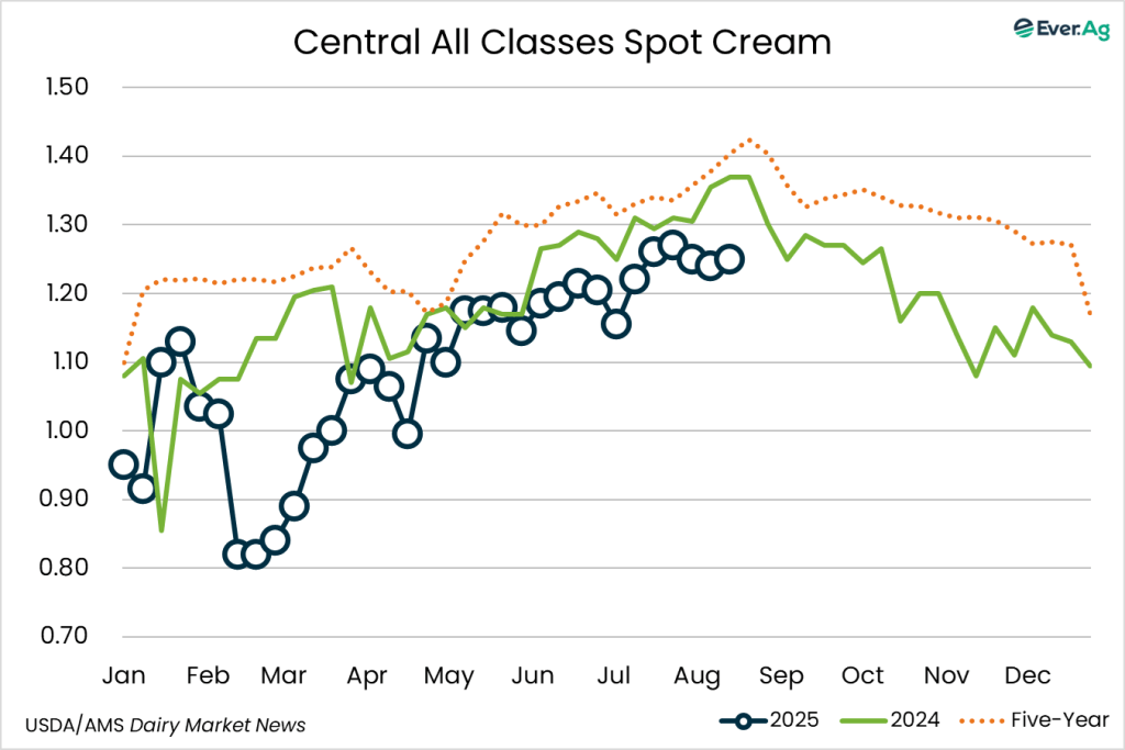 Ice cream makers are reducing spot cream orders, leaving volumes available for butter makers.