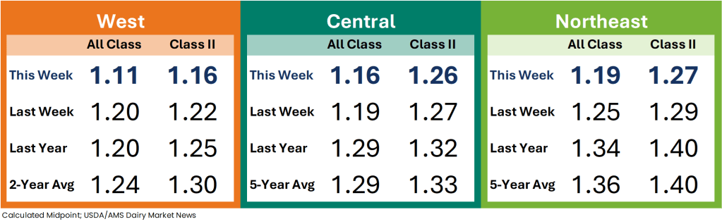 Cream production is increasing in the Central region and volumes are plentiful. Butter makers are running active production schedules. The bottom of the ranges for cream multiples moved lower this week.