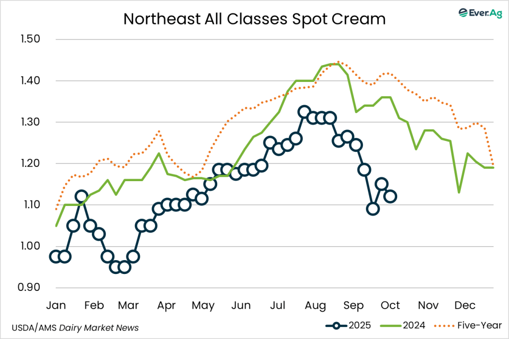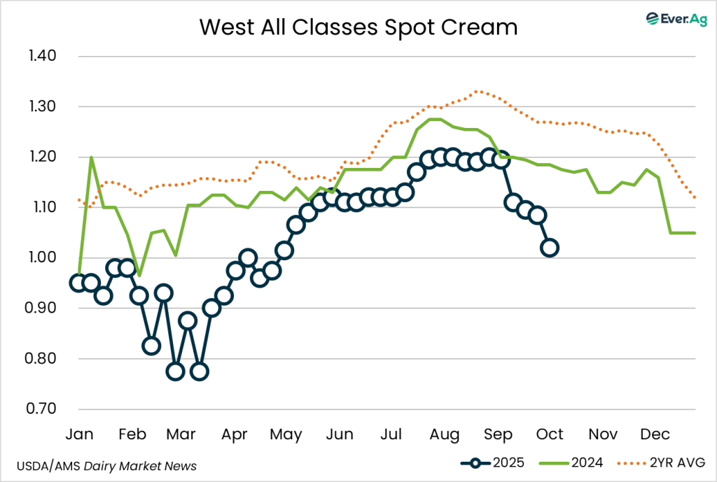 Cream multiples are down in the region, with supply outpacing demand. Butter churns are operating at or near capacity.