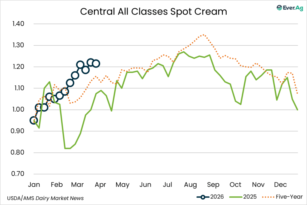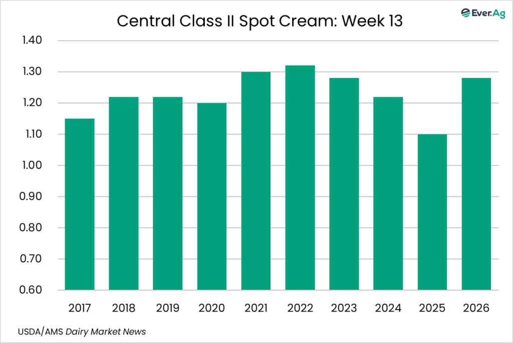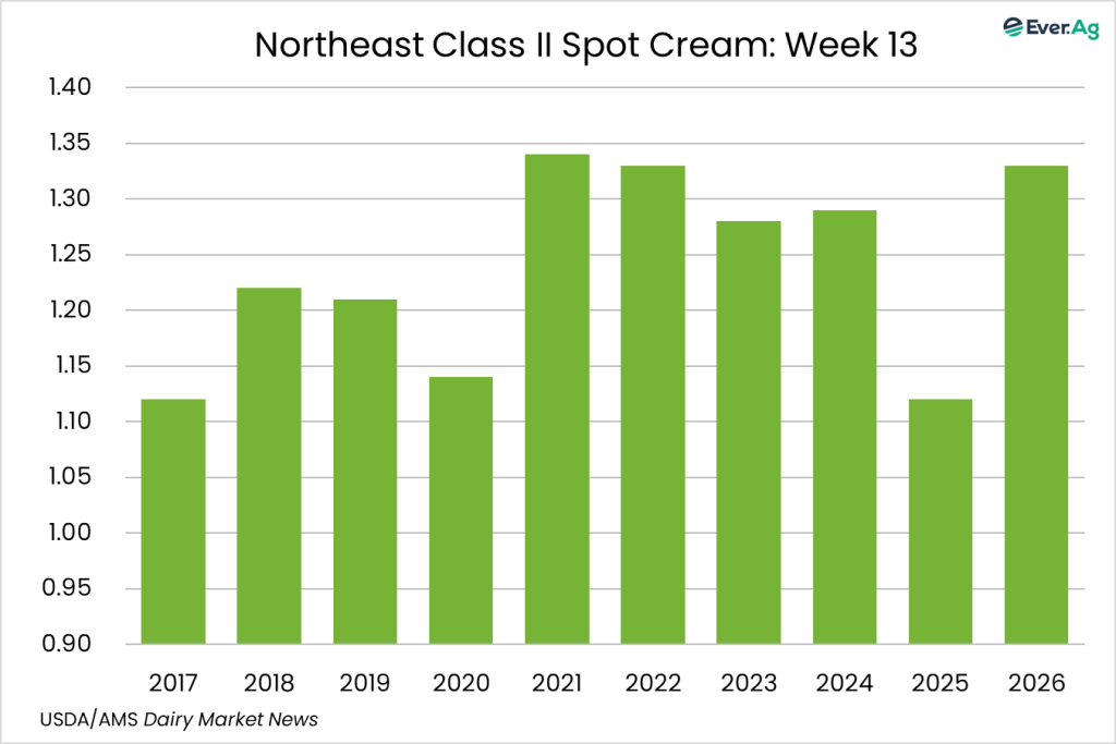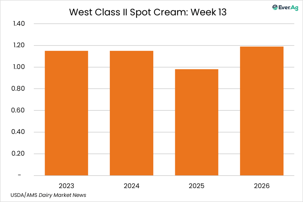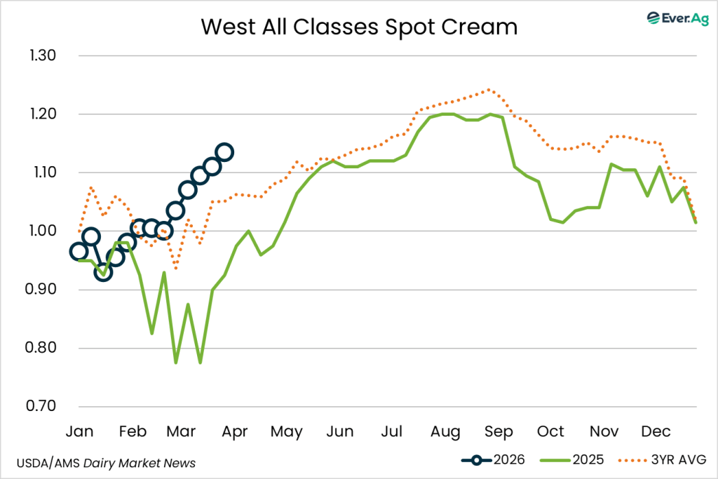 Cream multiples increased at the bottom of both ranges. Cream availability is slightly tighter. Cream demand is somewhat stronger, but some buyers are passing up loads due to freight costs.