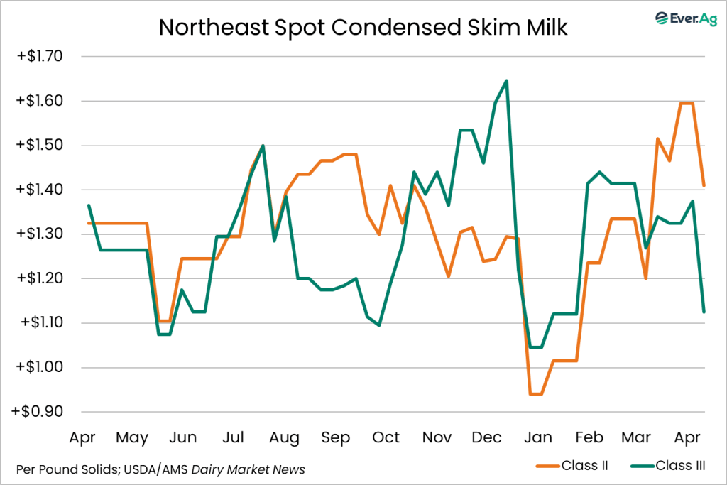 Milk volumes are increasing in the East region. The spring flush is in full swing, but manufacturers are having no problem taking increased volumes. Bottling demand is increasing slightly as many educational institutions are resuming class after spring break. Class II demand is on the rise, with many ice cream facilities ramping up operations, preparing for warmer months ahead. Contacts report an increased amount of spot cream purchased by Class II manufacturers. Class III demand is steady. Contractual volumes are sufficient for current production schedules. Class IV demand is strong.